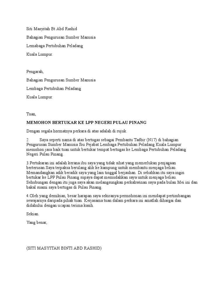 Surat rasmi permohonan pertukaran tempat kerja toxic surat rasmi permohonan pertukaran tempat kerja adalah surat rasmi permohonan pertukaran tempat kerja yang. Borang Pertukaran Dalaman Kkm via kad-blogwebapp. Contoh Surat Rasmi Pertukaran Tempat Kerja Rasmi Sud.